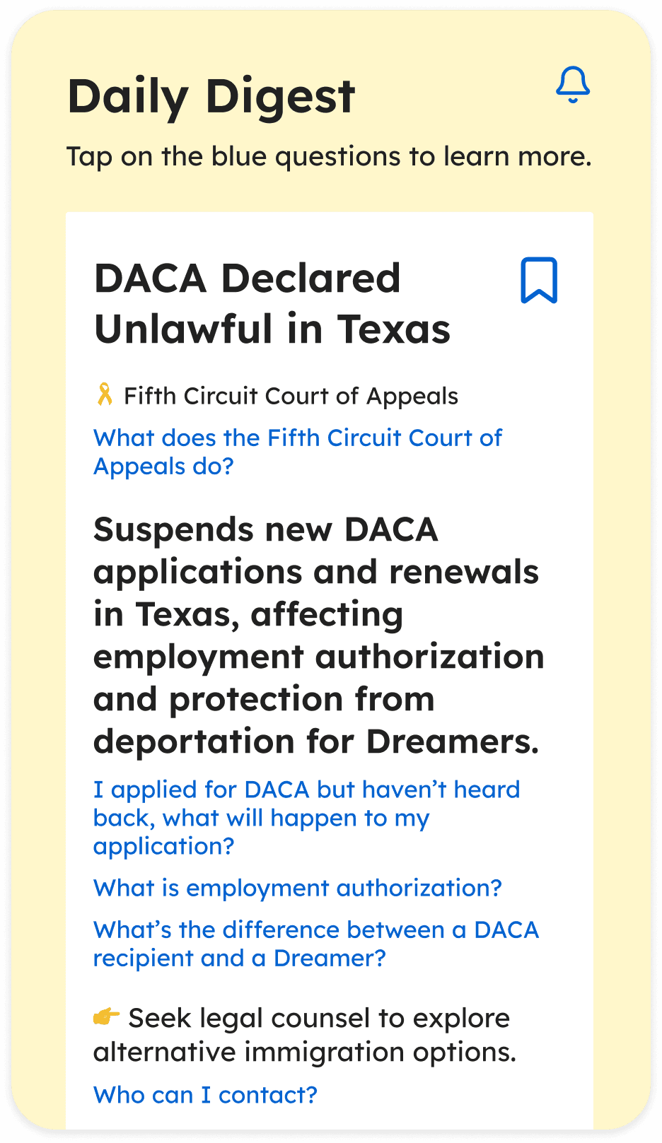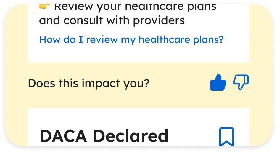 Present complex legal and policy information in digestible, plain language chunks with an emphasis on relevance and actionability