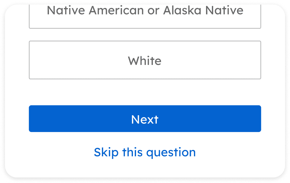 When the app asks for personal information, people can skip the questions with an option to revisit their choices later