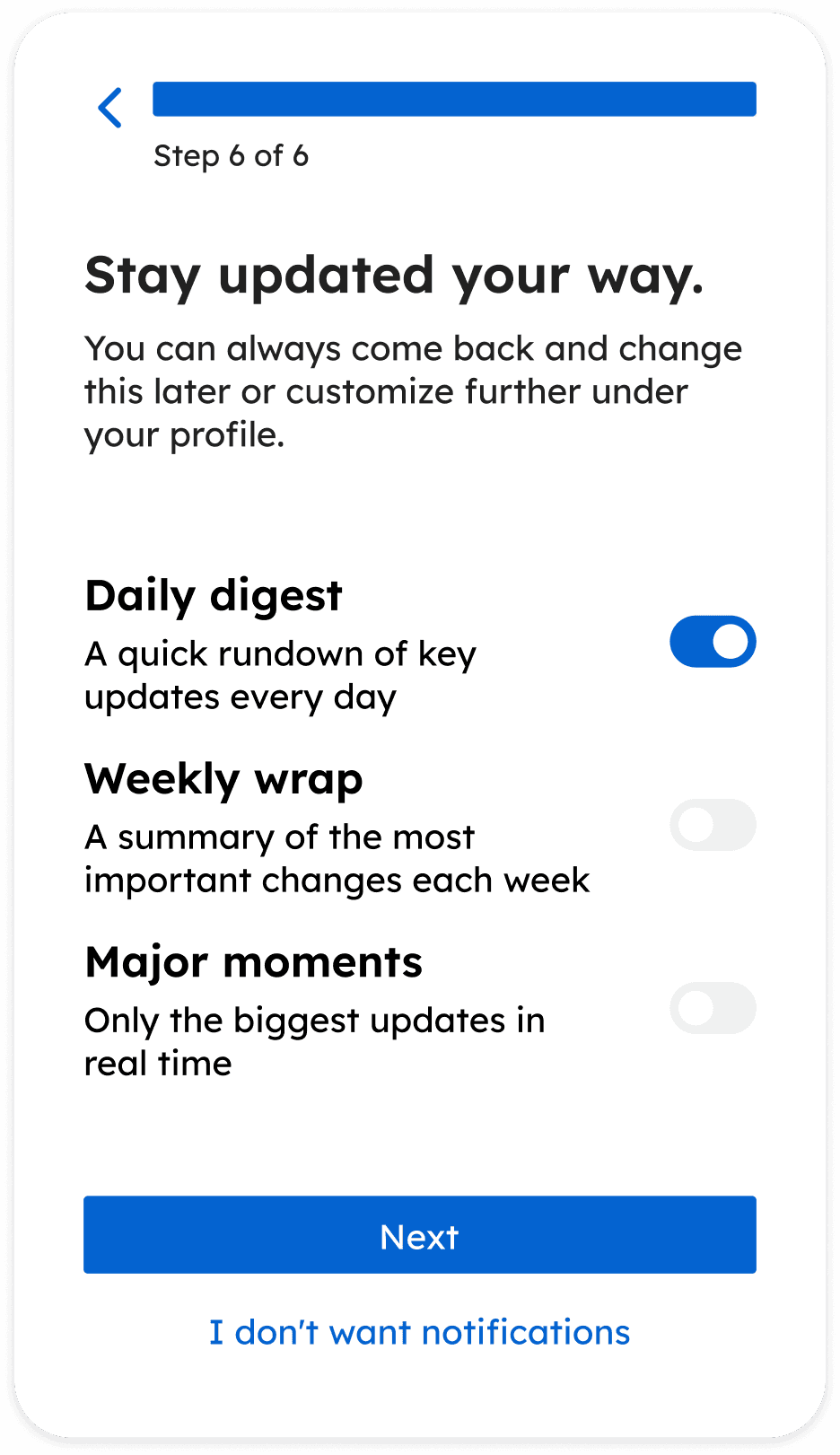 Tiered notification enables people to choose how often they receive updates and the content of those updates