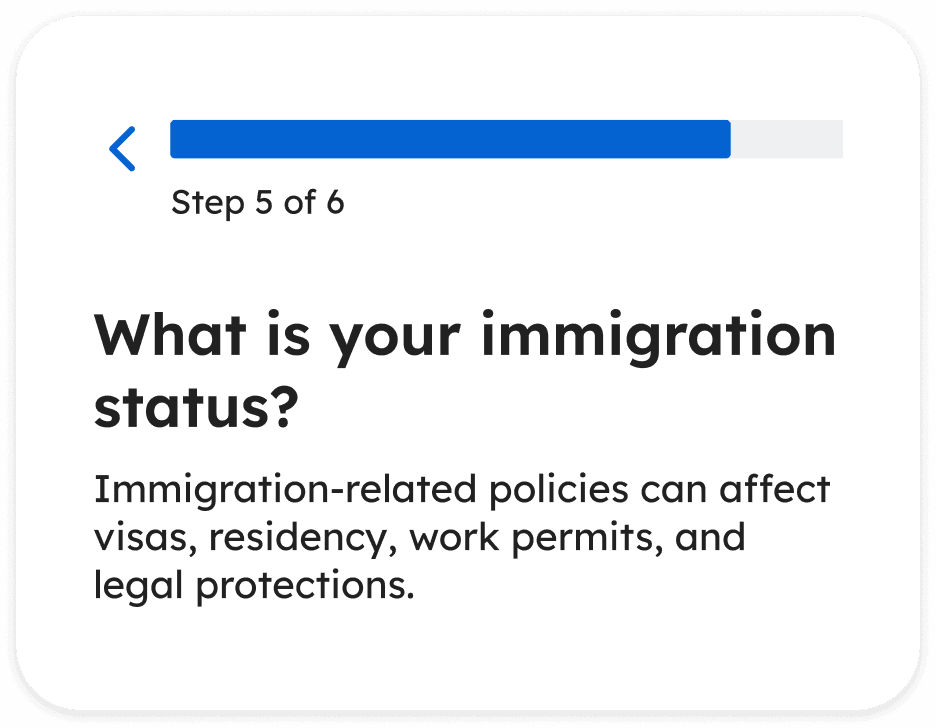 Information asked during onboarding can be sensitive so each question includes a brief explanation of how it connects to relevant policies, making the purpose clear and helping people understand if the question is relevant to them